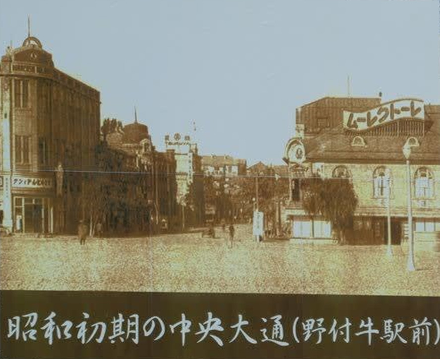 昭和初期の野付牛駅前(JR北見駅前の看板より)