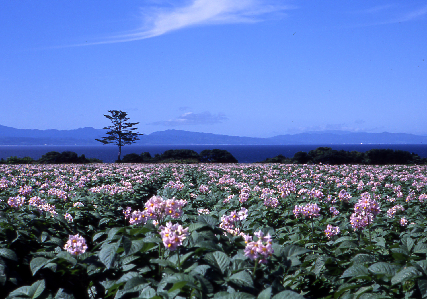 少女の父は、噴火湾沿いの八雲に広い農場を持っていた。少女は身体が弱かったので静養のために度々訪れる。6月、ガスがかかっている畑で、じゃがいもの花の美しさに驚く。薄紫のじゃがいもの花はヨーロッパでは高貴な花であったという。後年、東京で人間関係に疲れて八雲にやって来たのは、9月であった。駒ヶ岳の山並みを背景に走る列車をみつめながら、忘れがたき東京を思う日々であった。