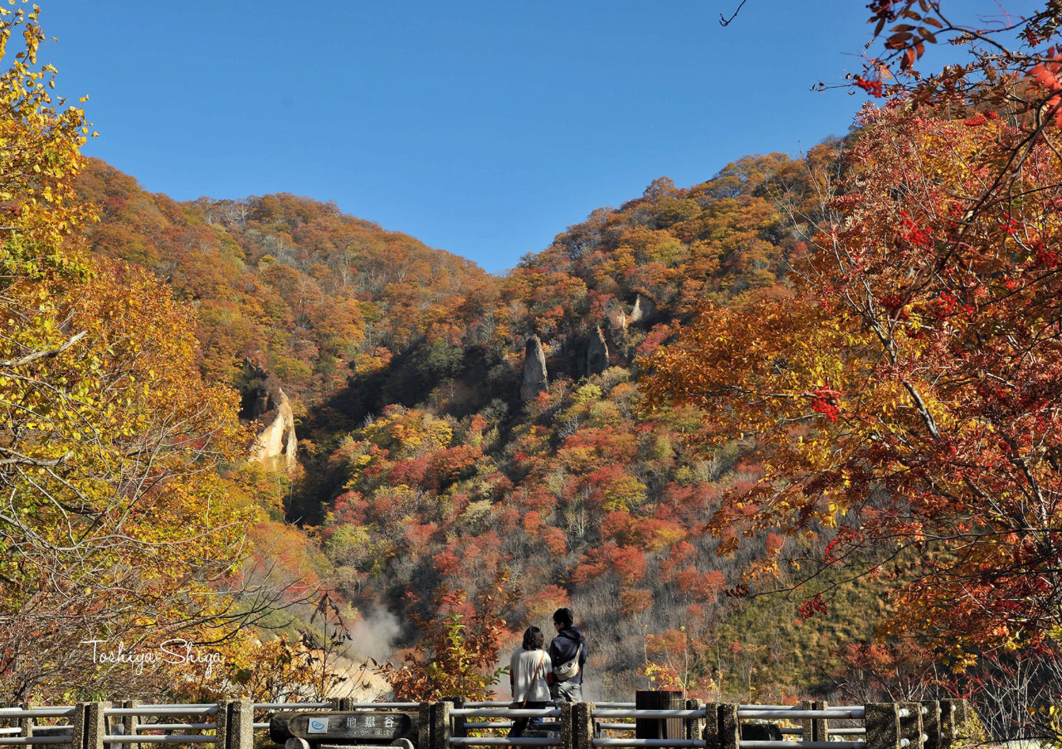 9月から10月にかけて、一番好きなのは登別温泉だ。登別の秋は日本一と。深く澄んだ空、紅葉と黄葉とが入り交じったもみじの鮮やかは、登別独特の自然の美しさであった。