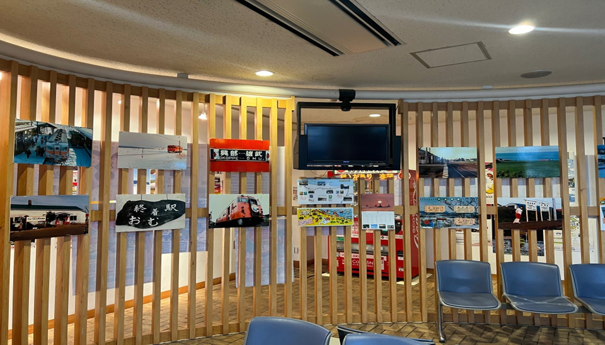 道の駅雄武に展示されている国鉄興浜南線の写真