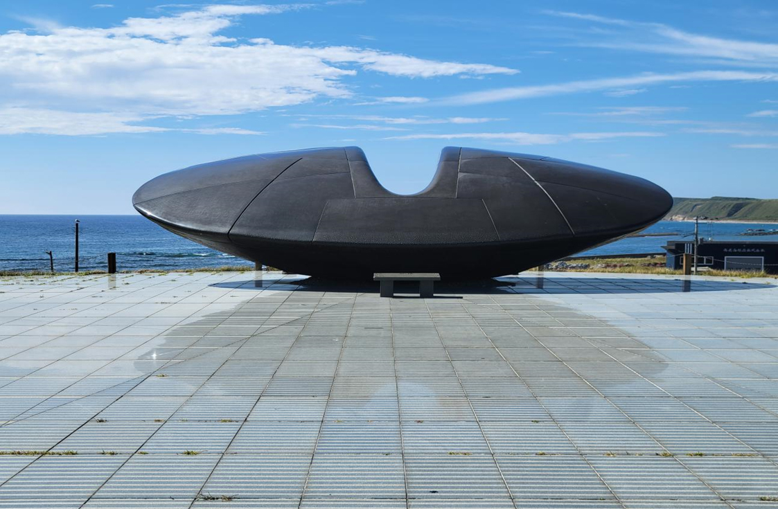 震災慰霊碑「時空翔」:奥尻島津波館近くにある