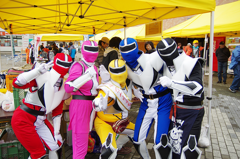 ビラトレンジャーとしての活動は一昨年の12月、斉藤さんが一人でスタートした。少しでも活性化の足掛かりになればという思いからだったという。そこから、一人ずつメンバーが増え、コスチュームも(通販で!)新調し……今では非公認ながらも町内外の祭りやイベントに参加し、子どもたちからの人気も抜群だ。レンジャーは各々仕事を持っているのでその日に集まれるメンバーで活動をしており、主にイエローが活動の中心である。平取に観光ツアーバスが来るときには整列してお出迎えもする。