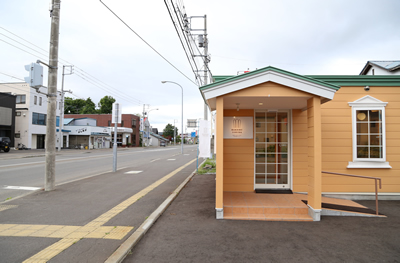 国道40号沿いに立つ「バーカリーいしだ」。やわらかなオレンジの外壁が目印(北海道名寄市西4条南2丁目10-1)