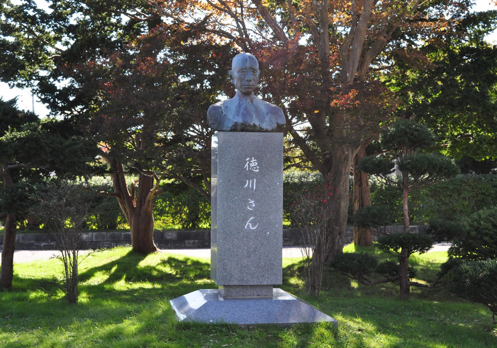 銅像は、名誉町民第1号に選ばれた際に町民有志により建立されたもの。それほどの偉人であるのに、自らを「徳川さん」と呼ばれることを好んだそうで、周囲から親しまれる飾らない人柄だったことがうかがえる。