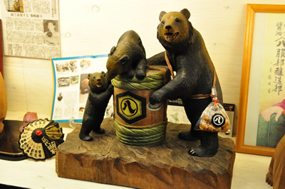 服部家の祖先は旧尾張藩徳川家の家臣で、1877(明治10)年にはじまった遊楽部(ユーラップ)開拓のため入植。そこで暮らしには欠かせない味噌や醤油を醸造したのが始まりだったという。自宅を改装したギャラリーには、いまでは珍しい初期の木彫り熊などがあり、歴史の深さを感じさせる。服部醸造は、創業当初から製造に携わるセクションのスタッフはすべて八雲町から雇用するといった地元密着の徹底ぶり。若いひとたちにも、このまちで働いてもらいたいという。安心・安全はもちろんのこと、地域活性化を目的に八雲産の素材のみで製造した「オール八雲」を販売するなど、八雲を盛り上げている。