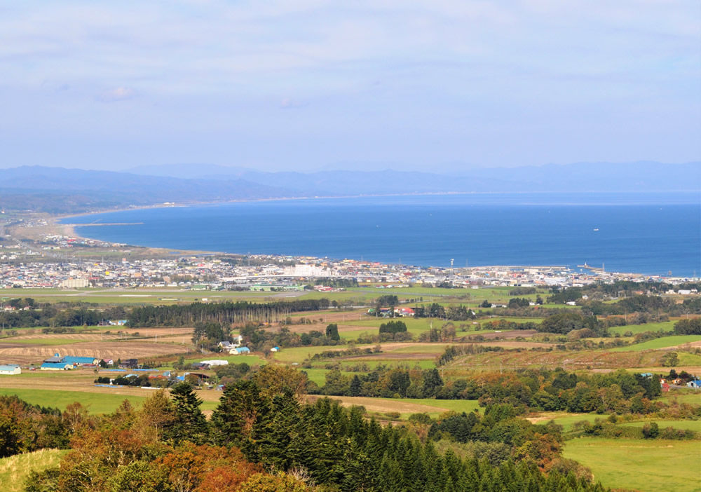 山の斜面には草原に乳牛が放牧され、緑の大地に草をはむ牛が北海道らしく、海のほうへ目を移すと市街地や内浦湾を一望できる。展望デッキもあるので、さらに高い位置からの眺めに興奮する。八雲が酪農と漁業のまちであることを一度に感じられる場所だ。