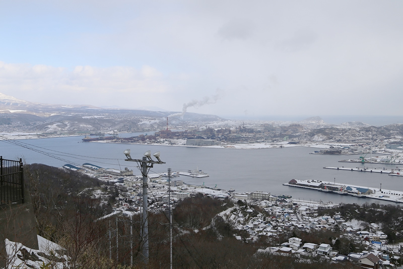 「前には室蘭の街並みや工場群が、後ろには噴火湾をはさんだ対岸の駒ケ岳などの山並みのパノラマが広がっています。夜になれば眼下の工場夜景、海の向こうには沿岸のまちの灯が漁火のように展開し、幻想的な景観を楽しめます」。なるほど、確かに室蘭の最初の着地点として行ってみたくなる場所だ。