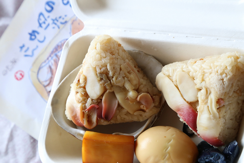 そして、観光道路ドライブのお供に、と教えてくれたのが「駅弁 母恋めし」。母恋(ぼこい)はアイヌ語のポ・オイ(ホッキ貝がたくさんある場所)が語源で、室蘭本線の終着・室蘭駅の一つ前が母恋駅。ホッキ貝のおにぎり二つと燻製したたまごとチーズ、漬けものに、デザート代わりのハッカ飴がつく地元人気の駅弁だ。