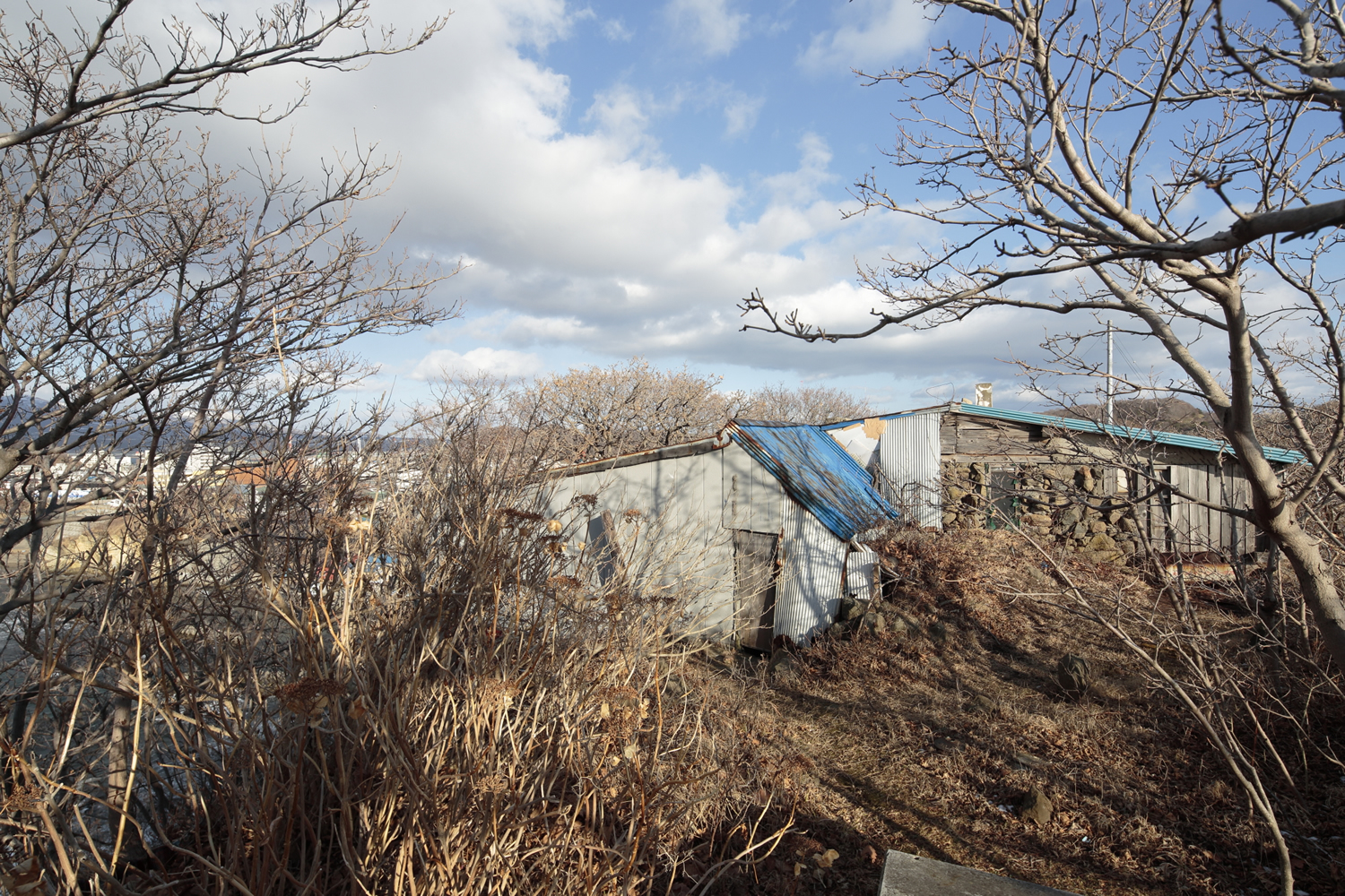シズさんは、かつて坂の下でバーや雑貨店をやっていた。ホールを開いた当初、崖の上に来る客はなく、翌年からジンギスカンや鶏鍋を出したところ繁盛するようになった。「当時、室蘭には人口が18万人もいて、鉄鋼マンは三交替で働くでしょ。中央町あたりのキャバレーやクラブで遊んだ後、食事をしに流れてくる。昼も夜も、朝3時まで歌って踊って、騒げる店でした。20年くらい続いたかな」。そろそろ店を閉めようと覚悟を決めたら、「俺たちが来るから、喫茶店にしてくれ」と、室蘭工業大学の学生たちに言われ、コーヒーを250円で出すようになった。それにしても、探検心がそそられる店だ。鉄鋼マンで賑わっていた、学生たちのたまり場だった時代を想像しながら、裏庭に出てみることにした。